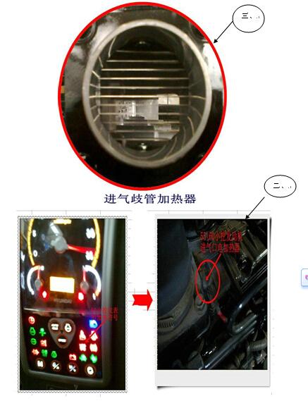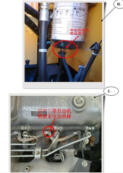 隆冬季节,天寒地冻,气温大都在-5度以下,这在北方地域,冰冻土层十分坚硬,工程机械作业几乎无法施工。因此北方的土方工程了这个季节,大都停工了。但要在南方,基础工程须按计划施行,工程机械作业基本不停,象偶尔会遇到极低的气温下,对工程机械设备来说,如挖掘机的心脏部件——发动机的启动是一个非常严峻的考验,挖机驾驶员都有这样的经历,早晨起来,冰冻下雪,气温极寒,想开动挖掘机施工,把钥匙打在ON上,几秒钟、几十秒但见启动马达在转动,发动机就是打不响,最终电瓶经不起频繁折腾,耗尽全部电量,还是不能启动。对于这个现实问题,设计人员已经考虑到了,比如早些年20吨级现代挖掘机,它安装了一个带电子开关的乙醚罐,一旦遇到极端低温,在驾驶室操作盘上有点动开关,只要按几下,乙醚罐就喷出乙醚到发动机吸气歧管,能助发动机很快爆燃。(商店里陈列的《发动机启动液》里面成分就是乙醚)到如今通过多年的改进,现在挖掘机的低温“助力启动”大都采用在吸气歧管口安装一个带电热丝的加热器,其原理;让外界极低温的冷空气通过电加热丝变成热空气,这样有利于气缸头部燃烧室受压缩的混合气体的爆燃。控制方法;有人工点动,有电脑自动控制,人工点动好理解,电脑自动控制;就是当把启动钥匙打到启动时仪表上有电热丝符号发亮,这就意味着电加热在工作,一旦发动机爆燃启动,电加热就自动关闭。象洋马、现代三菱、康明斯等发动机都采用这种形式,还有一种;就是在发动机燃烧室内插入电加热棒,同样也起到“助力爆燃的作用”,一般日系发动机都这种方法(见附图)。另外,极低的气温会使燃油(柴油)粘度增加,流动性差,这也会导致启动困难,现代挖机有的型号在燃油滤芯底部也安装电加热器,同样是为了顺利启动发动机