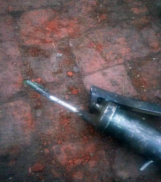 引导轮就直接卸下螺丝,黄油枪插进去,发动车支起来一边空转一边注油。