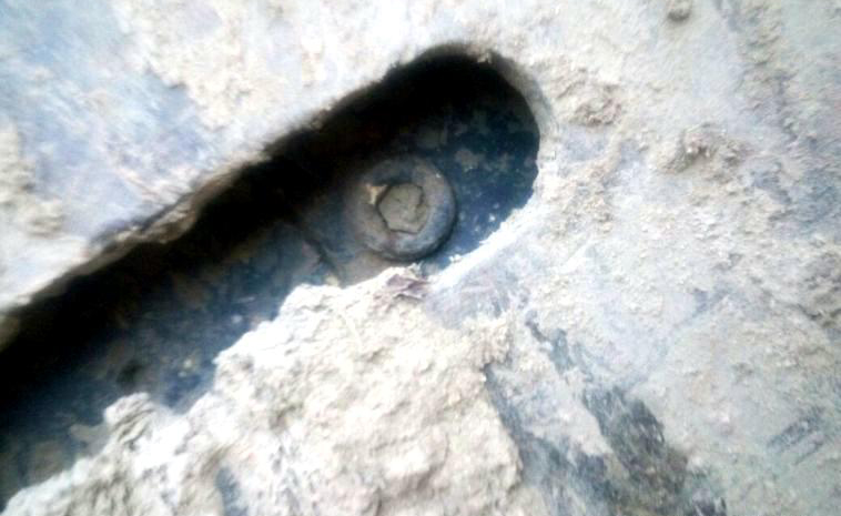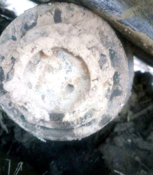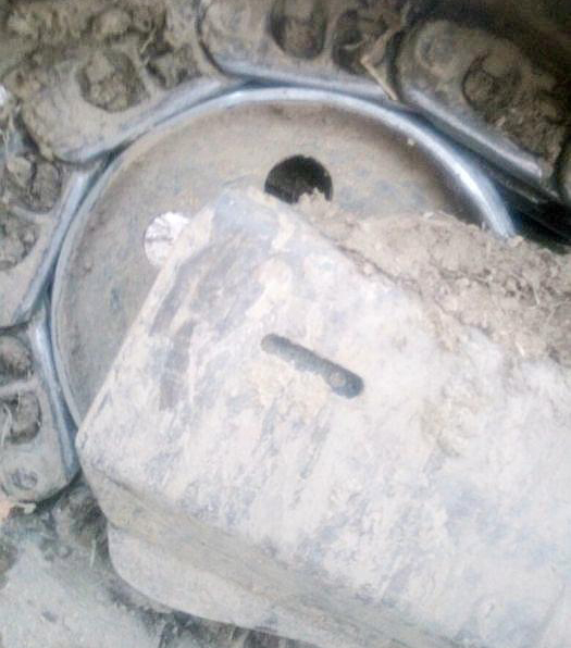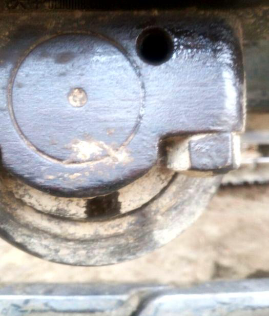 大家看这个支重轮,有一个螺丝拧下来就可以注油啦,都锈了,用力过大折了,磁力棒吸出来。这个轮子油封渗油,特别冬天。所以要多注油。