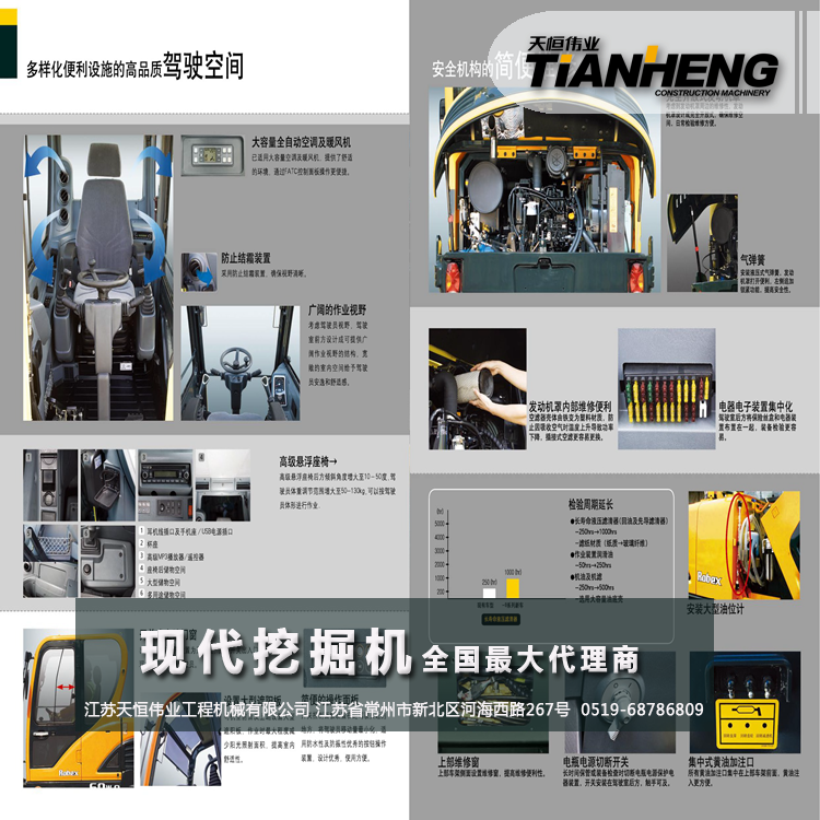广阔的作业视野:考虑驾驶员视野,驾驶室前方设计成可提供广阔视野的结构,宽敞的室内间给予驾驶员安逸和舒适感。采 用内藏式方管更显高级。 |